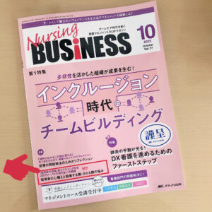 メディカ出版さんのNursing BUSINESS(ナーシングビジネス)2023年10月号に